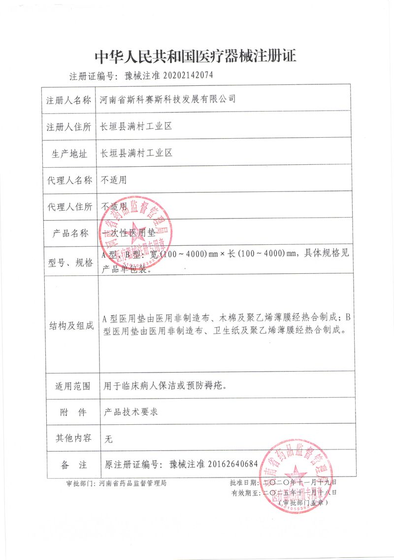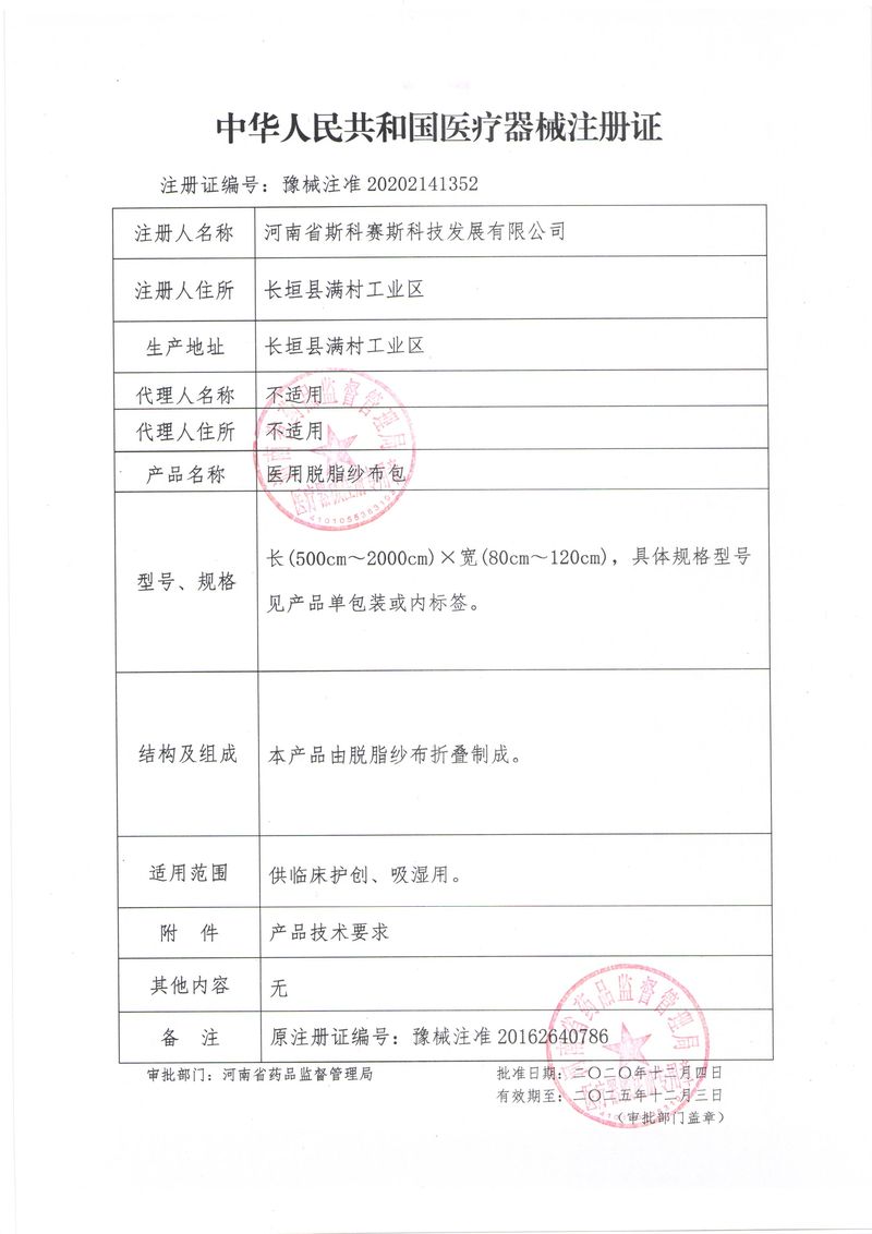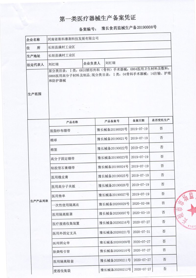 河南省斯科賽斯科技發(fā)展有限公司創(chuàng)建于 2011 年,位于“中國醫(yī)療耗材之都”- 河南省長垣縣,西臨 308 省道,南靠新菏鐵路,北依長濟高速,交通便捷,經(jīng)濟發(fā)達(dá),環(huán)境優(yōu)美。斯科賽斯積極進入醫(yī)療健康和服務(wù)領(lǐng)域,秉承為用戶創(chuàng)造價值的理念,專注于醫(yī)用耗材解決方案的研發(fā)和運營,并為用戶提供完善的產(chǎn)品解決方案;  斯科賽斯主要生產(chǎn)醫(yī)用麻醉系列、醫(yī)用高分子系列、醫(yī)用敷料包系列、醫(yī)用無紡布系列、醫(yī)用防護系列、醫(yī)用脫脂棉系列、生物材料制品類等七大類、100 多個品種、400 多個規(guī)格的產(chǎn)品。公司占地面積約 30000 平方米,建筑面積20000 平方米,擁有 10 萬級的凈化車間總面積 10000 平方米。擁有國際先進水平的生產(chǎn)設(shè)備和檢測儀器,技術(shù)裝備精良,檢測手段完善,為醫(yī)療行業(yè)的不斷發(fā)展進步提供保障。公司順利通過 ISO9001、ISO13485 質(zhì)量管理體系認(rèn)證。  斯科賽斯堅持研發(fā)高科技新產(chǎn)品,力爭在醫(yī)療器械關(guān)鍵領(lǐng)域取得技術(shù)和研發(fā)的重大突破;立足國內(nèi)和國際兩個市場,逐步實現(xiàn)管理理念、經(jīng)營機制、人力資源、技術(shù)、產(chǎn)品、市場等全方位對接,提高企業(yè)的核心競爭力;過去的歲月里,斯科賽斯砥礪前行,誠信務(wù)實,銳意進取,不斷創(chuàng)新,用自己的睿智和辛勞,以富有責(zé)任感的使命,在探索中追求,在追求中超越,致力于成為值得信賴的醫(yī)療用品生產(chǎn)企業(yè)!在未來的日子里,斯科賽斯將一如既往豪情滿懷,信心百倍,攜手并肩,執(zhí)著追求,向更高的的目標(biāo)前進,鑄造新的輝煌!